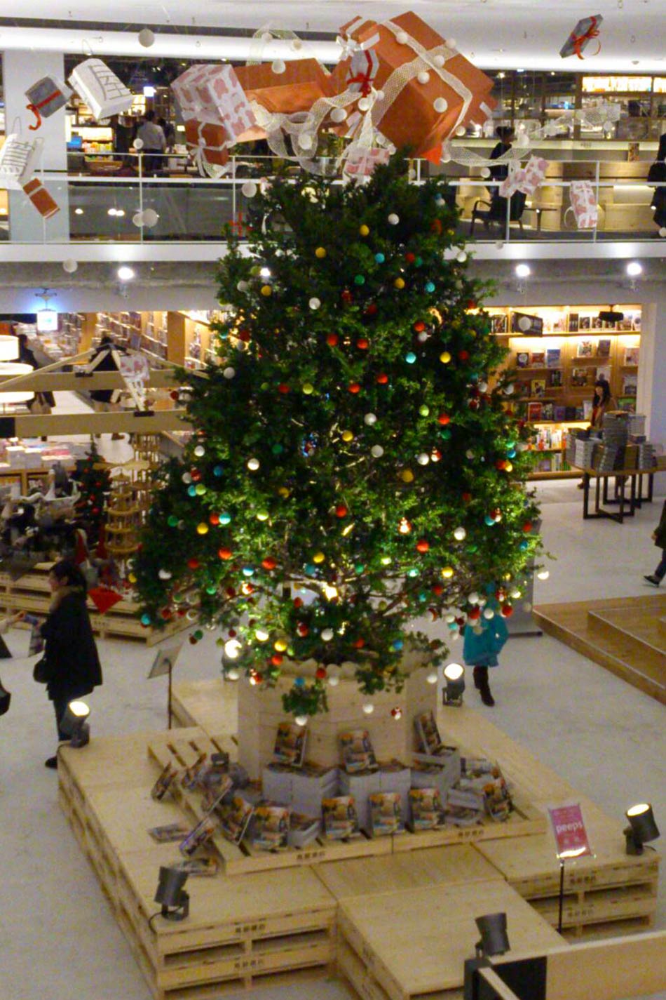 12月 | 店内巨大ツリー展示(羊毛フェルトパーツ提供)/ 函館蔦屋書店 |