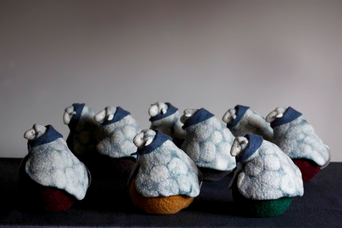 緬羊牧場「スピナーズファームタナカ」の代表 故 田中忠二氏をはじめ、国内外様々なフェルト作家や工芸家と交流。作品・技術にとどまらず歴史や文化にも魅了され、羊毛フェルトへの造詣をより深めていく。