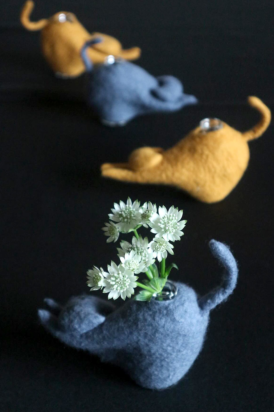 2002年 | 帯広市の幼児教室が手掛ける天然素材の玩具店にて羊毛フェルトに出会い心を打たれ、独学で子供のための作品制作を始める。後に地元誌の特集で緬羊牧場「スピナーズファームタナカ」を知り、代表の故 田中忠二氏に師事し本格的な技術を学ぶ。以降、国内外様々なフェルト作家や工芸家と交流し造詣を深めていく。 |